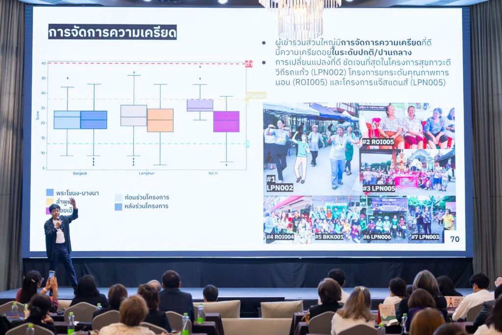 ย่านอยู่ดีประเทศไทย ไม่ได้เกิดจากการสร้างพื้นที่เพียงอย่างเดียว แต่ต้องอาศัย กิจกรรมเป็นตัวขับเคลื่อนให้ผู้คนเข้ามาใช้พื้นที่ และสร้างการเปลื่ยนแปลงในชีวิตจริง จากการดำเนินกิจกรรมในหลายพื้นที่พบว่าผู้เข้าร่วมไม่ได้เข้าเพียงเพราะต้องการดูแลสุขภาพ แต่ยังต้องการ “ความสัมพันธ์” และ “การมีส่วนร่วม” ในชุมชนกิจกรรมจึงกลายเป็นพื้นที่กลางที่ทำให้คนได้พบปะ พูดคุยและสร้างความผูกพันธ์ระหว่างกัน ผลลัพธ์ที่เกิดขึ้นไม่ได้จำกัดอยู่แค่ร่างกาย เช่น การออกกำลังกายหรือการเคลื่อนไหวที่มากขึ้น แต่ยังส่งผลต่อสุขภาพจิตและรู้สึกภายใน ผู้เข้าร่วมจำนวนมากมีความเครียดลดลง นอนหลับดีขึ้น และรู้สึกมีคุณค่าในตนเองมากขึ้น ในระดับชุมชนกิจกรรมช่วยทำให้ผู้คนรู้จักกันมากขึ้น เกิดความไว้วางใจและนำไปสู่ความรู้สึกเป็นเจ้าของพื้นที่ร่วมกัน เมื่อผู้คนรู้สึกว่าพื้นที่นั้นเป็นของเขา ก็จะเกิดการดูแลรักษาและพัฒนาต่ออย่างยั่งยืน
